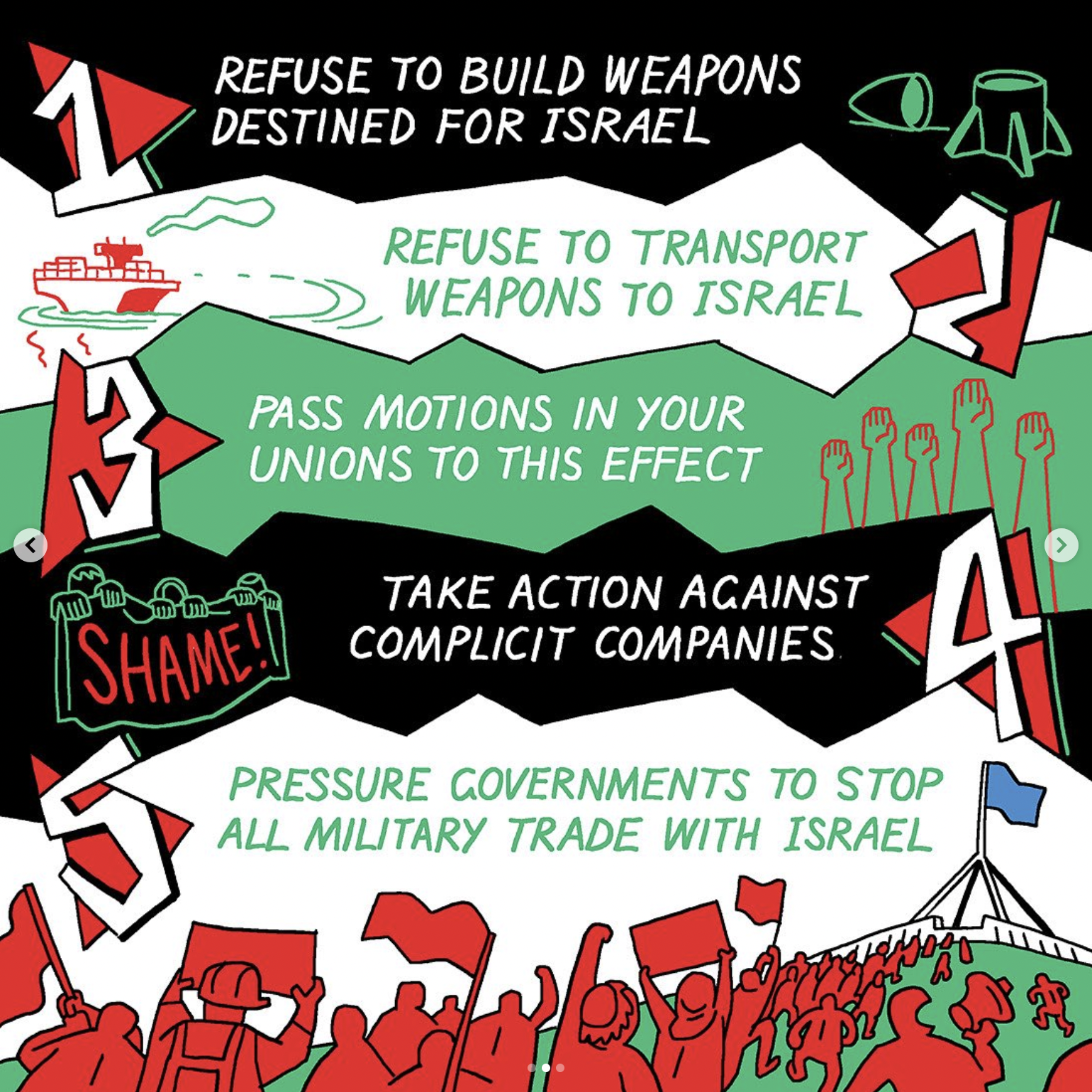 Beautiful artwork by Workers Art Collective member @benjuers #stoparmingisrael